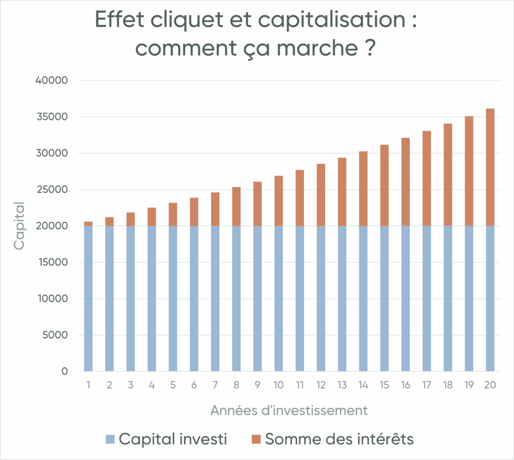 Et ce n’est pas tout : ces intérêts, une fois acquis, travaillent pour vous ! Grâce aux intérêts composés, ils génèrent à leur tour des rendements les années suivantes, accélérant la croissance de votre épargne. Ce mécanisme puissant, appelé capitalisation ou encore « effet boule de neige » vous permet de construire votre patrimoine en toute sérénité.