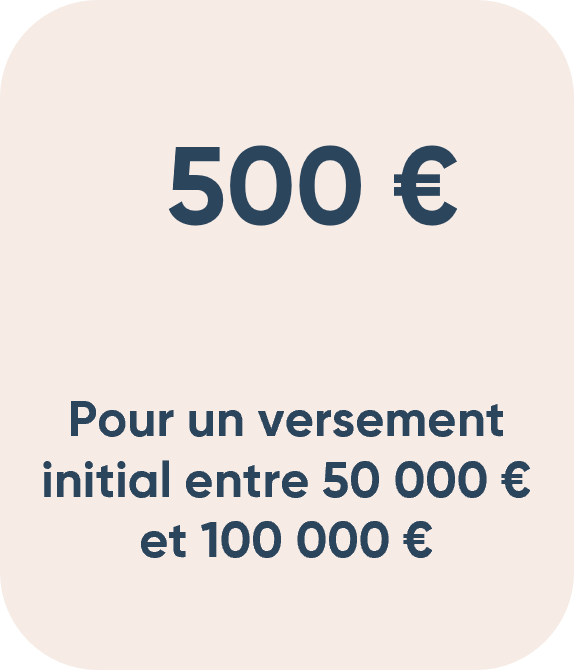*Si votre versement initial se situe entre deux paliers, nous appliquerons la prime la plus avantageuse pour vous. Offre valable jusqu’au 30/06/2026, soumise à conditions, voir le règlement